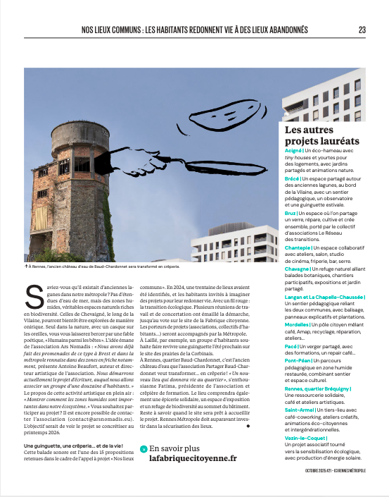 Ouest-France – Rennes, deux promenades sonores à Baud Chardonnet en juin