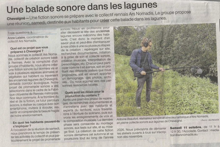 Ouest-France – Bientôt une balade sonore à travers les anciennes lagunes de Chevaigné?