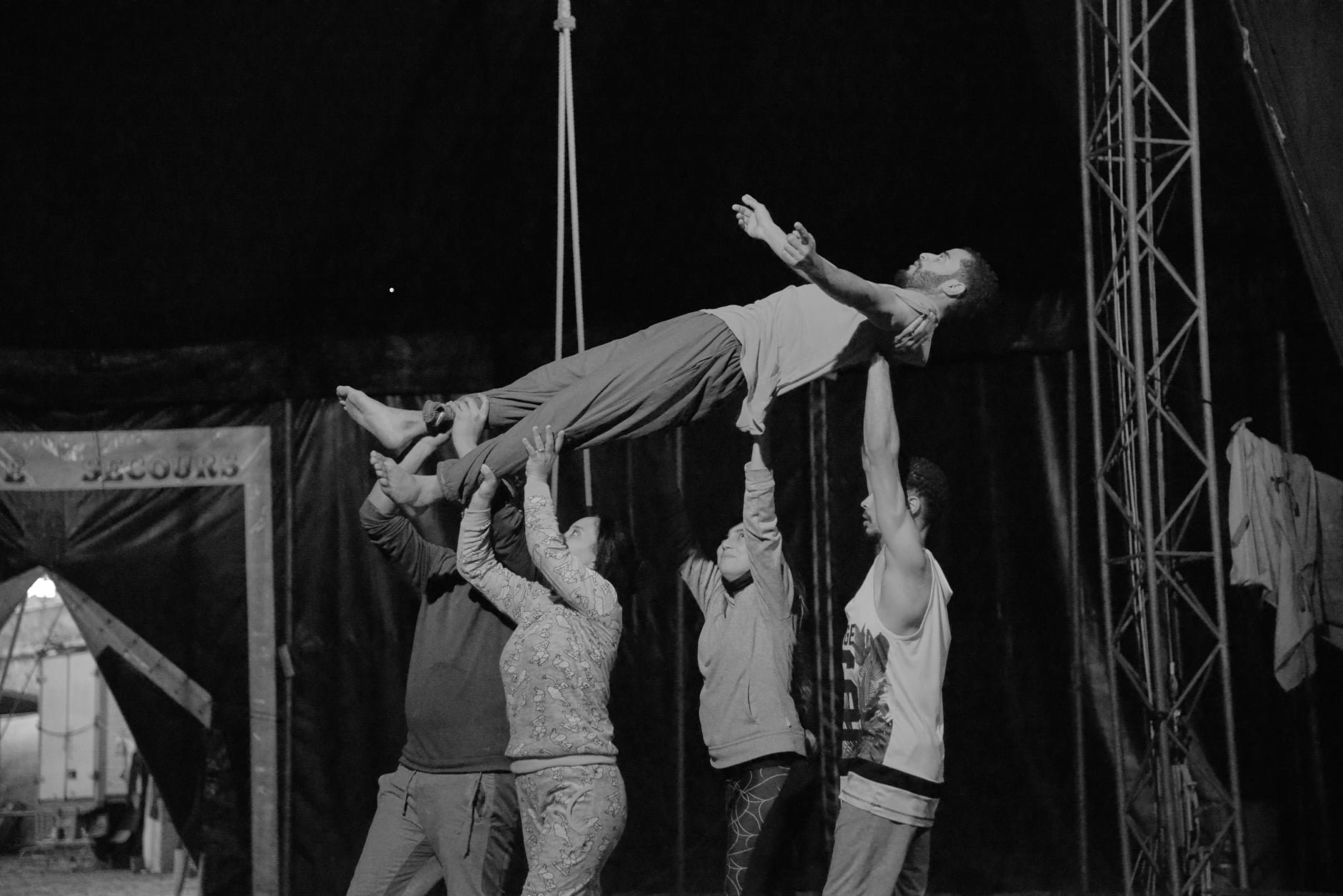 Lors de la résidence en janvier 2021 à Casablanca, une formation professionnelle a été proposée aux artistes de la compagnie Théâtre Nomade :